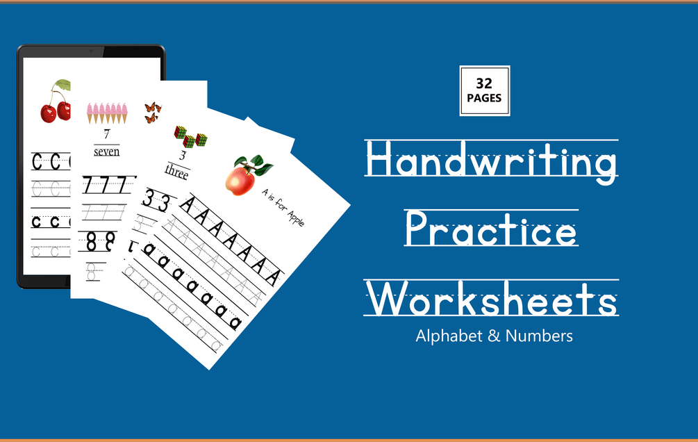 Kids Handwriting Practice Worksheets, 32 Pages, Middle School, Children, Hand lettering Alphabet ABC Letter and Numbers Tracing. Handwriting practice will be made easy with these printable sheets! Tracing over these 32 practice sheets will help you perfect and improve upon your handwriting.